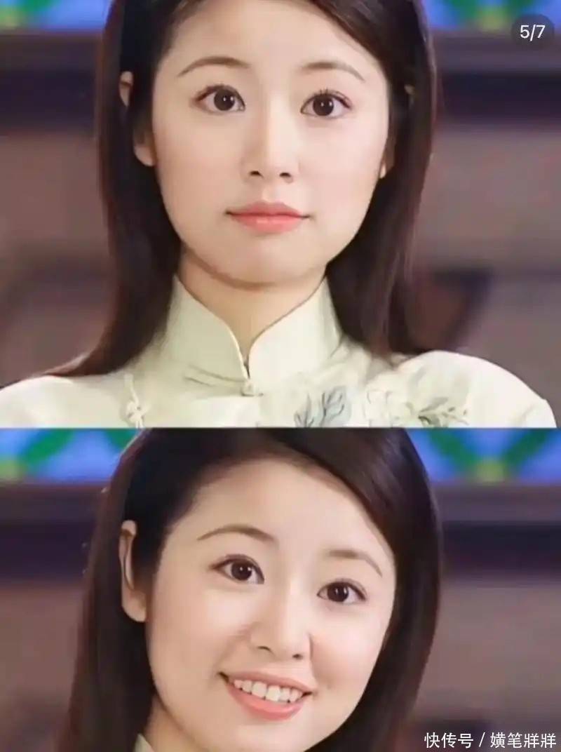 脸部线条紧致流畅,下颌缘清晰利落,苹果肌丰盈饱满,隐约保留着当年紫薇格格的娇憨神韵。